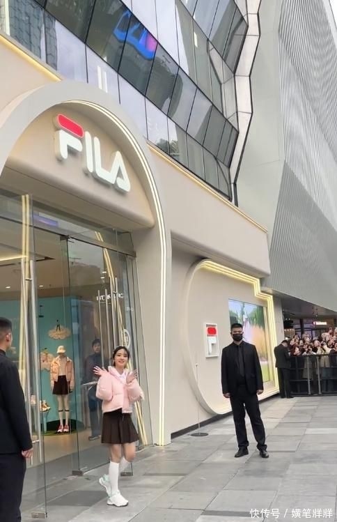 当天,她穿着一件粉色棉袄、咖色短裙,脚上搭配运动鞋,打扮的非常运动少女。